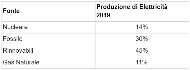 L’attuale produzione di elettricità è così distribuita tra le fonti: