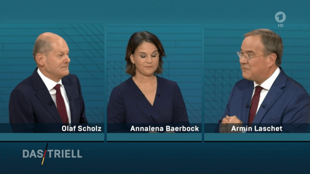 In parte i temi trattati sono stati gli stessi dell’altra volta. Si è parlato di nuovo di difesa del clima, e in maniera abbastanza sorprendente la questione è stata dominata da un confronto molto serrato fra Scholz e Laschet, con Baerbock un po’ defilata su un punto che invece dovrebbe essere il suo core business. Baerbock ha poi ripreso il tema dell’infanzia e delle scuole, a cui aveva dedicato molta attenzione anche durante il primo dibattito. Si è parlato di nuovo di tasse, di pensioni, di un possibile tetto ai canoni di affitto delle case e di digitalizzazione, su cui di nuovo sono emerse le affinità fra SPD e Grünen, anche se almeno sull’ultimo tema nessuno dei tre è sceso nei dettagli di come si vuole aggiornare la – carentissima – infrastruttura tecnologica tedesca