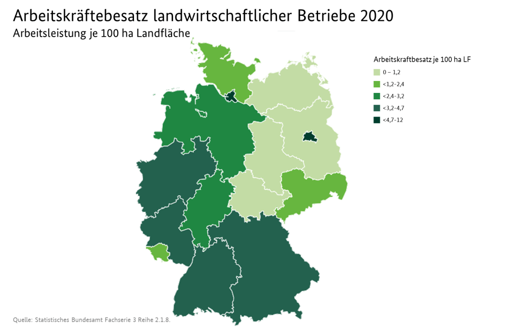 Il settore agricolo contribuisce ormai solo in piccola parte all’economia tedesca. A livello occupazionale impiega solo l’1,2% della forza lavoro del Paese, secondo dati del 2022, per un totale di circa 256.000 aziende e di oltre 16 milioni di ettari fra campi coltivati e pascoli.