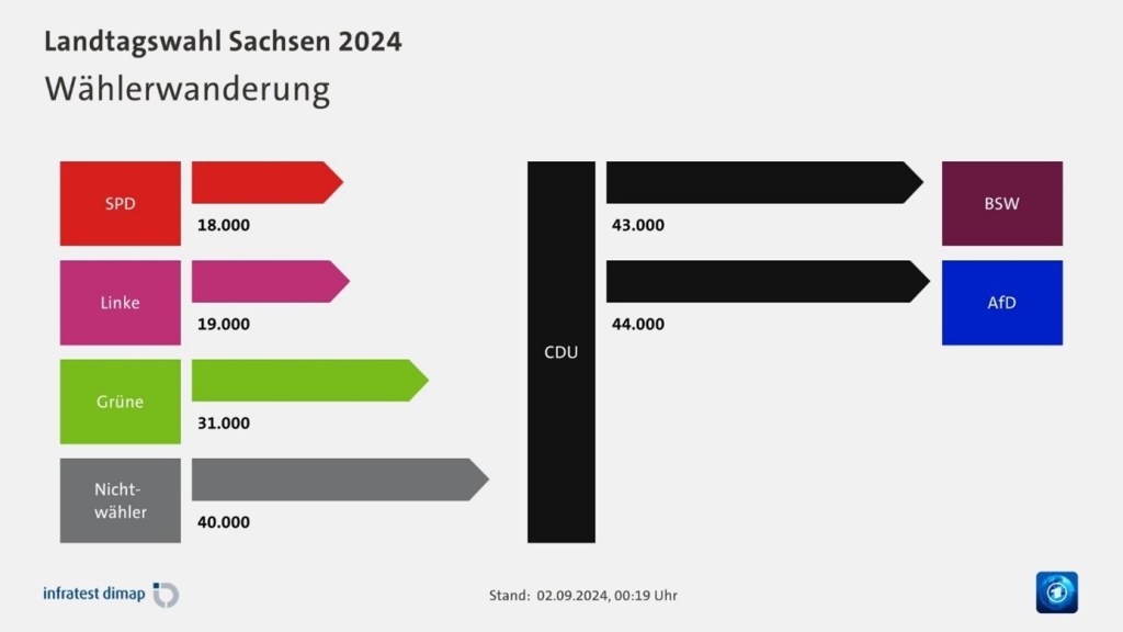 Anche in termini di flussi elettorali – in entrata ed in uscita – la situazione per la CDU sassone è un chiaroscuro: