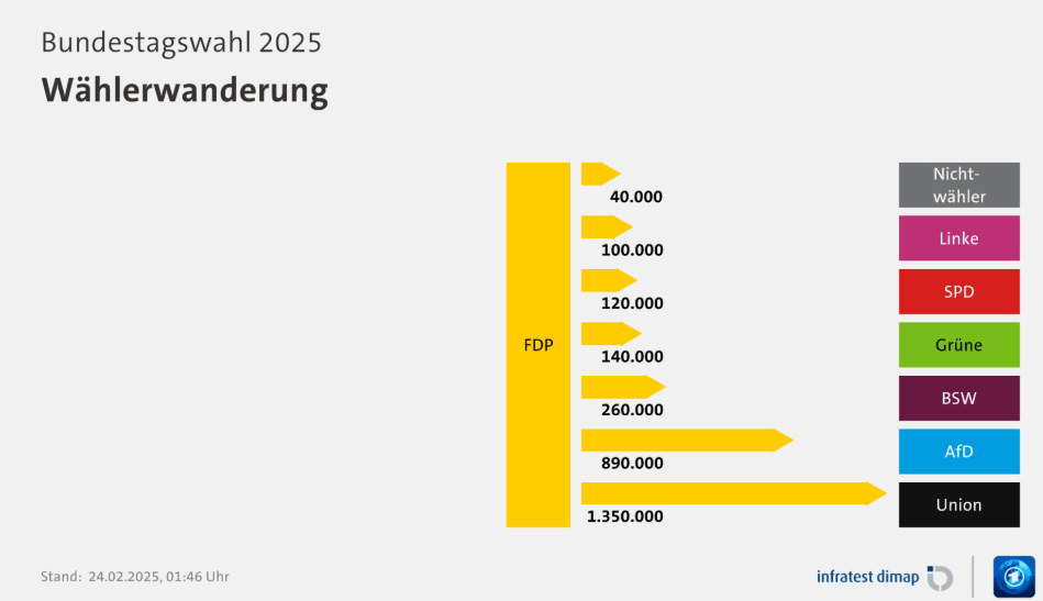 Il secondo partito a uscire dalle urne completamente annichilito è la FDP. Fin dalle prime proiezioni uscite subito dopo la chiusura dei seggi era chiaro che sarebbe servito un miracolo, che puntualmente – come i miracoli tendono a fare – non è arrivato. I liberali si fermano a un misero 4,3%, confermando un loro infelicissimo marchio di fabbrica: quello che li vede restare fuori dal Bundestag subito dopo essere stati al governo. La stessa cosa successe infatti nel 2013, dopo la turbolenta esperienza del secondo gabinetto Merkel. L’emorragia di voti della FDP è schizzata da tutte le parti (addirittura verso la Linke), ma in particolare verso il resto dello schieramento di destra: un milione e 350.000 voti verso i conservatori, quasi 900.000 verso gli estremisti di AfD. Se c’è una cosa che abbiamo imparato, domenica sera, è che lo zoccolo duro degli elettori FDP non esiste più.